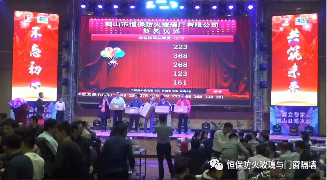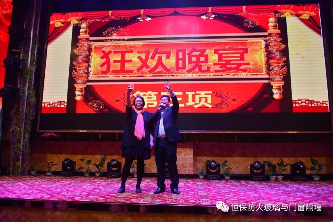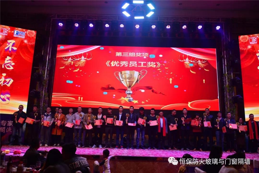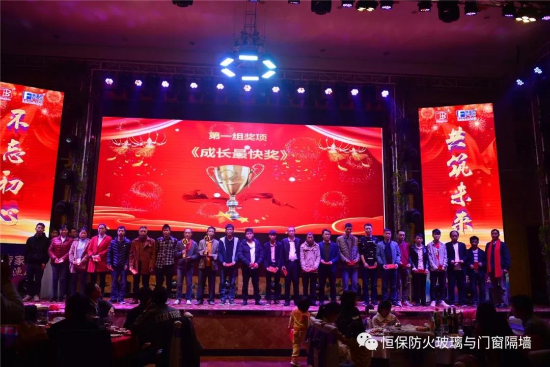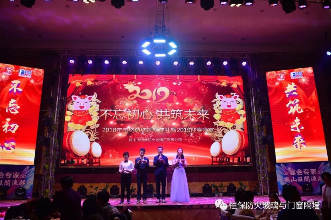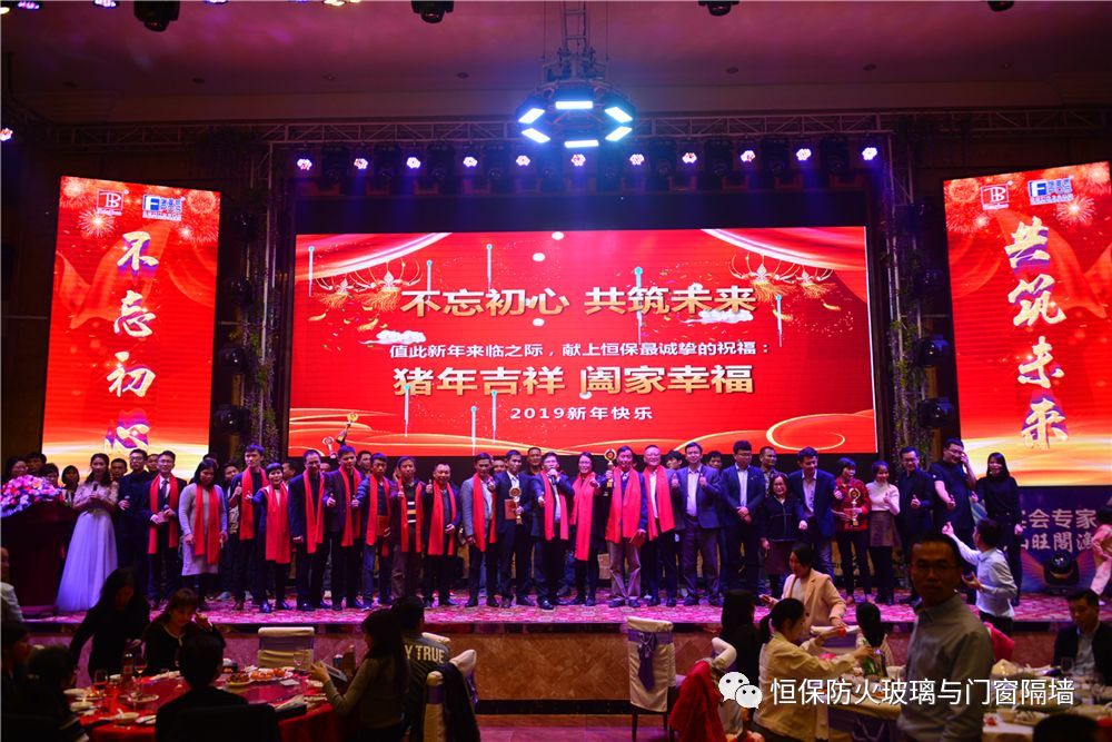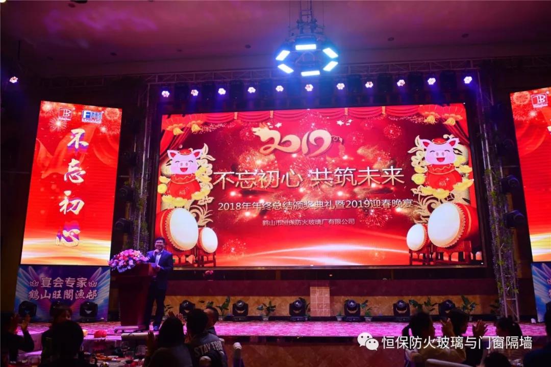 19:30分,恒保年會在鼓舞飛揚(yáng)中拉開了帷幕,首先是恒??偨?jīng)理陳沃林先生做年終致辭,陳總回顧了2018年所取得的成績與不足,并提出了2019年恒保要全力以赴,不忘初心,繼續(xù)奮斗,再創(chuàng)佳績的戰(zhàn)略方針。2018年是恒??缭桨l(fā)展的一年。全體恒保家人,團(tuán)結(jié)一心,艱苦奮斗,全力實(shí)現(xiàn)了公司既定的年度目標(biāo),同比各項(xiàng)重要指標(biāo)增長逾80%。2018年我們大力引進(jìn)新設(shè)備,開發(fā)新產(chǎn)品10多項(xiàng),產(chǎn)品通過國家檢測20多項(xiàng) ,至此,恒保出品已擁有37個3C認(rèn)證,158份檢驗(yàn)報(bào)告,成為行業(yè)內(nèi)公認(rèn)通過國家檢驗(yàn)、認(rèn)證最多的防火玻璃門窗企業(yè);2018年在行業(yè)各類權(quán)威獎項(xiàng)評比中,榮獲“全國鋁門窗幕墻展 年度星品獎”、榮獲“新玻網(wǎng) 門窗玻璃十強(qiáng)企業(yè)”、陳沃林總經(jīng)理榮獲鶴山市工商聯(lián)系統(tǒng)“工匠之星”稱號、陳沃林總經(jīng)理榮獲第五屆中國玻璃行業(yè)“玻璃工匠”稱號、榮獲第三屆建筑門窗金軒獎“最具創(chuàng)新力配套產(chǎn)品”、榮獲第三屆建筑門窗金軒獎“最具發(fā)展?jié)摿ζ髽I(yè)”、榮獲中國門窗幕墻行業(yè)“科技進(jìn)步推動獎”等十多項(xiàng)獎項(xiàng)。2019年我們將持續(xù)優(yōu)化各部門管理,提高員工工作技能、提高生產(chǎn)管理水平、提高生產(chǎn)效率、提高綜合管理能力,減少物料損耗,減少出錯率。加強(qiáng)精密型材、新型防火門窗的開發(fā),滿足不同客戶的需求。2019年恒保上下一心、同心協(xié)力、不忘初心,共筑未來,為實(shí)現(xiàn)中國平安夢、世界平安夢繼續(xù)奮斗!