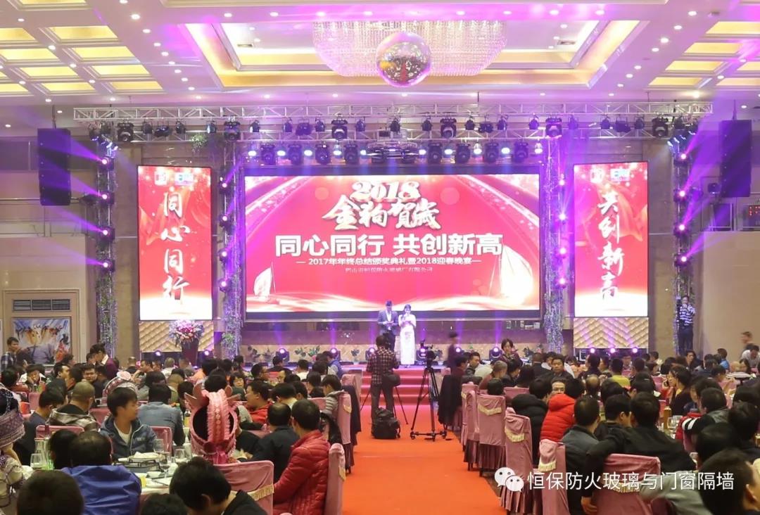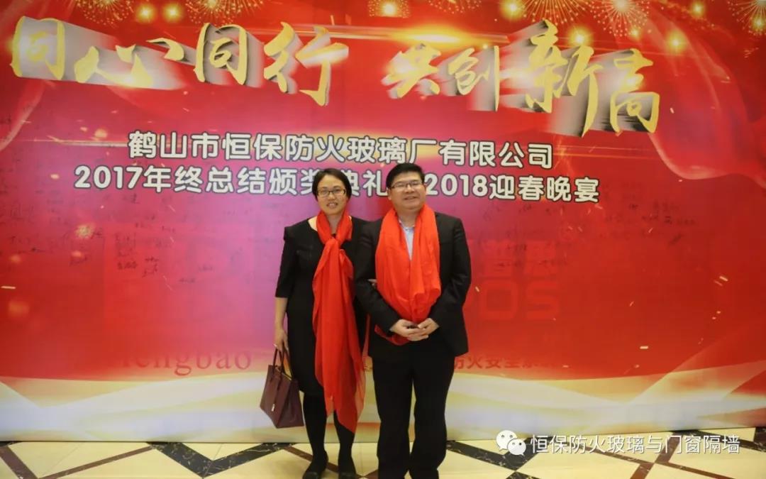 【同心同行,共創(chuàng)新高!】鶴山市恒保防火玻璃廠有限公司2017年年終總結頒獎典禮暨 2018年迎春晚會,在陳總攜同著高管團隊領唱《相親相愛一家人》的歌聲中,畫上了完美的句號。